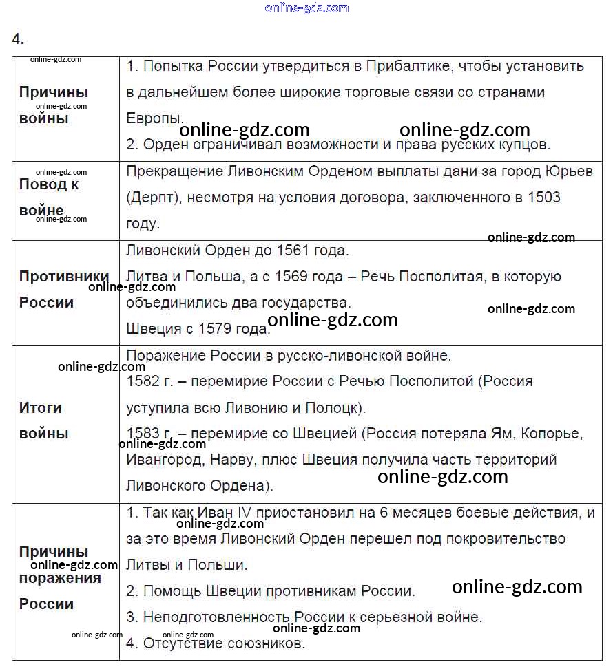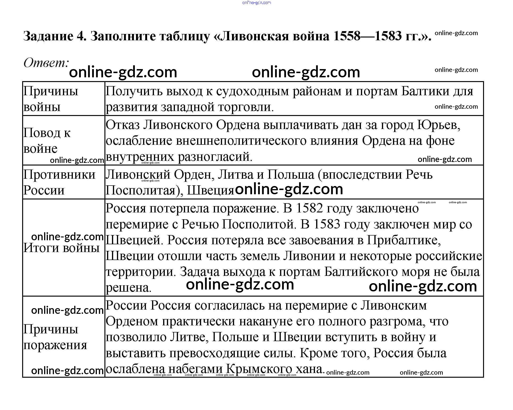 Готовые домашние задания по Истории за 7 класс Рабочая тетрадь Данилов, Косулина УМК 2016 - § 7—8. Внешняя политика России во второй половине XVI в. 4