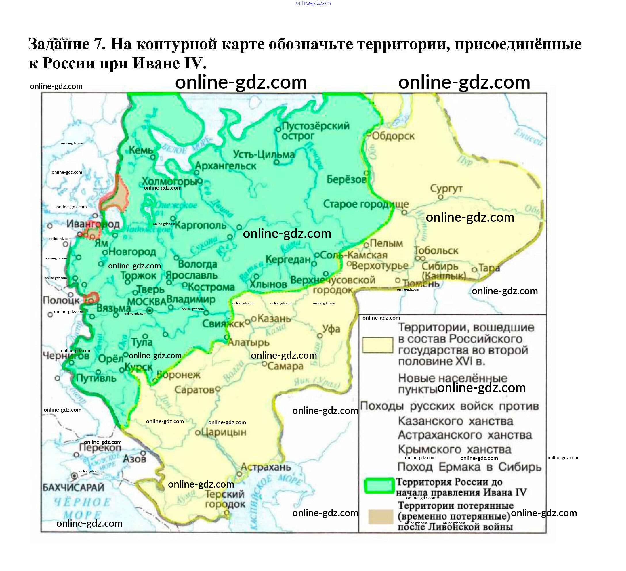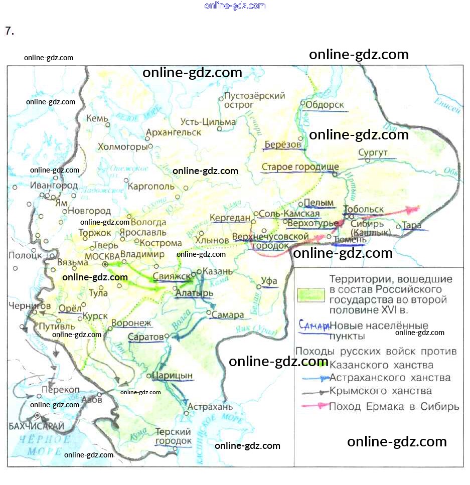 Готовые домашние задания по Истории за 7 класс Рабочая тетрадь Данилов, Косулина УМК 2016 - § 7—8. Внешняя политика России во второй половине XVI в. 7