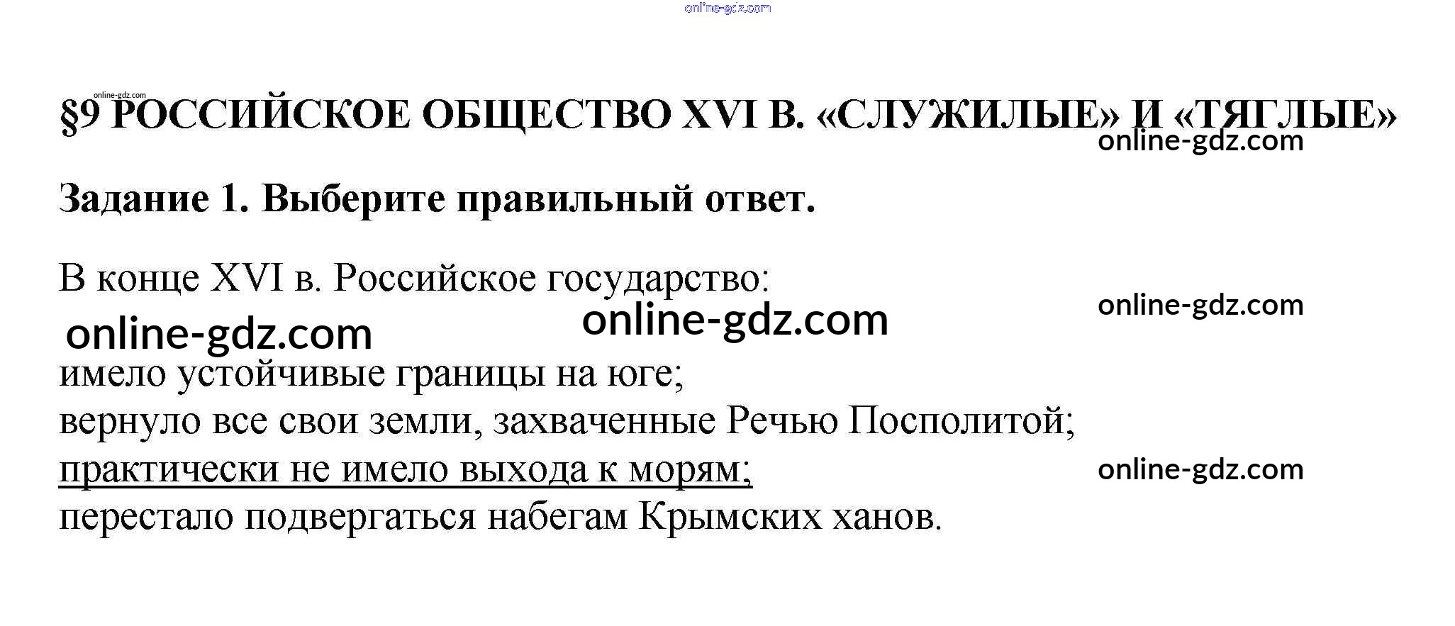 Готовые домашние задания по Истории за 7 класс Рабочая тетрадь Данилов, Косулина УМК 2016 - § 9. Российское общество XVI в.: СЛУЖИЛЫЕ И ТЯГЛЫЕ 1