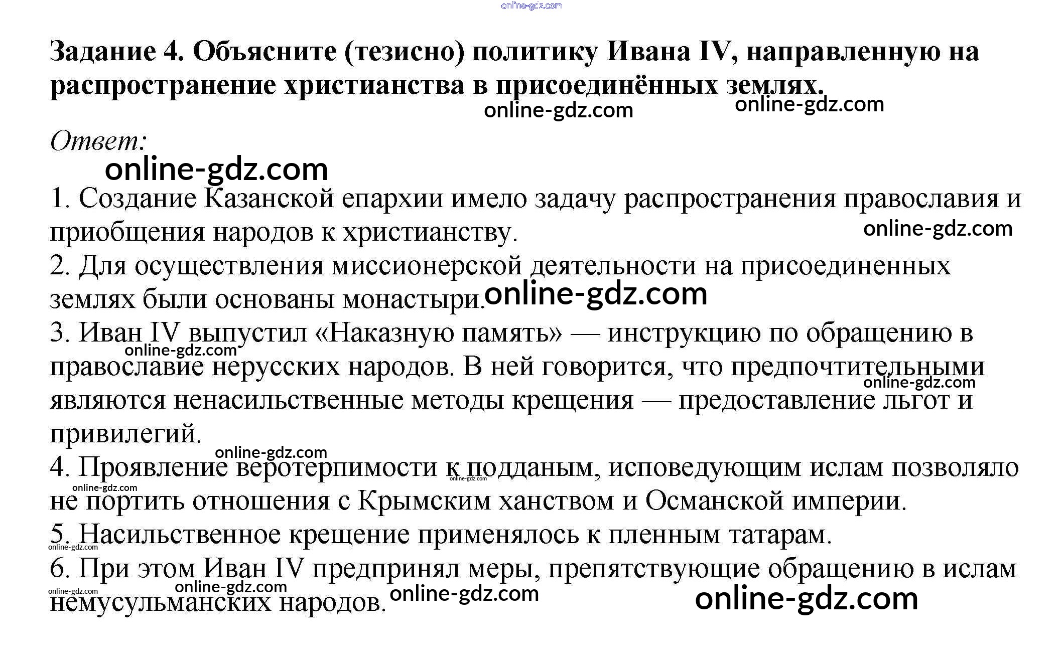 Готовые домашние задания по Истории за 7 класс Рабочая тетрадь Данилов, Косулина УМК 2016 - Народы России во второй половине XVI в. 4