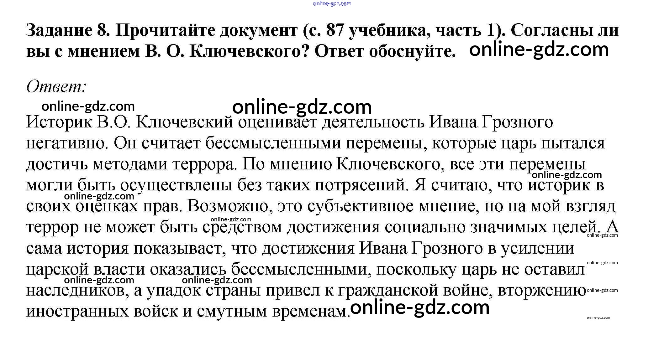 Готовые домашние задания по Истории за 7 класс Рабочая тетрадь Данилов, Косулина УМК 2016 - § 10. Опричнина 8