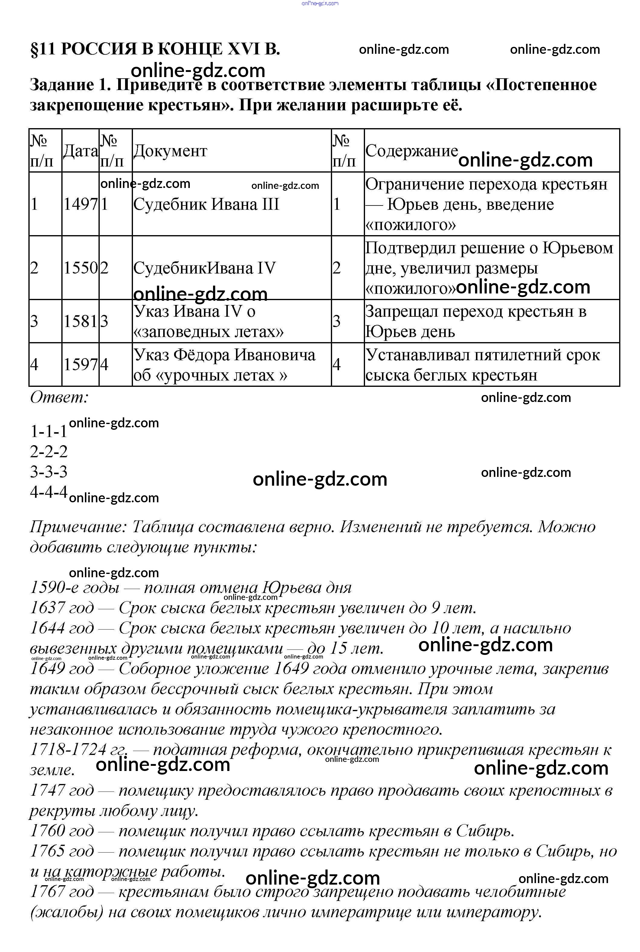Готовые домашние задания по Истории за 7 класс Рабочая тетрадь Данилов, Косулина УМК 2016 - §11. Россия в конце XVI в. 1