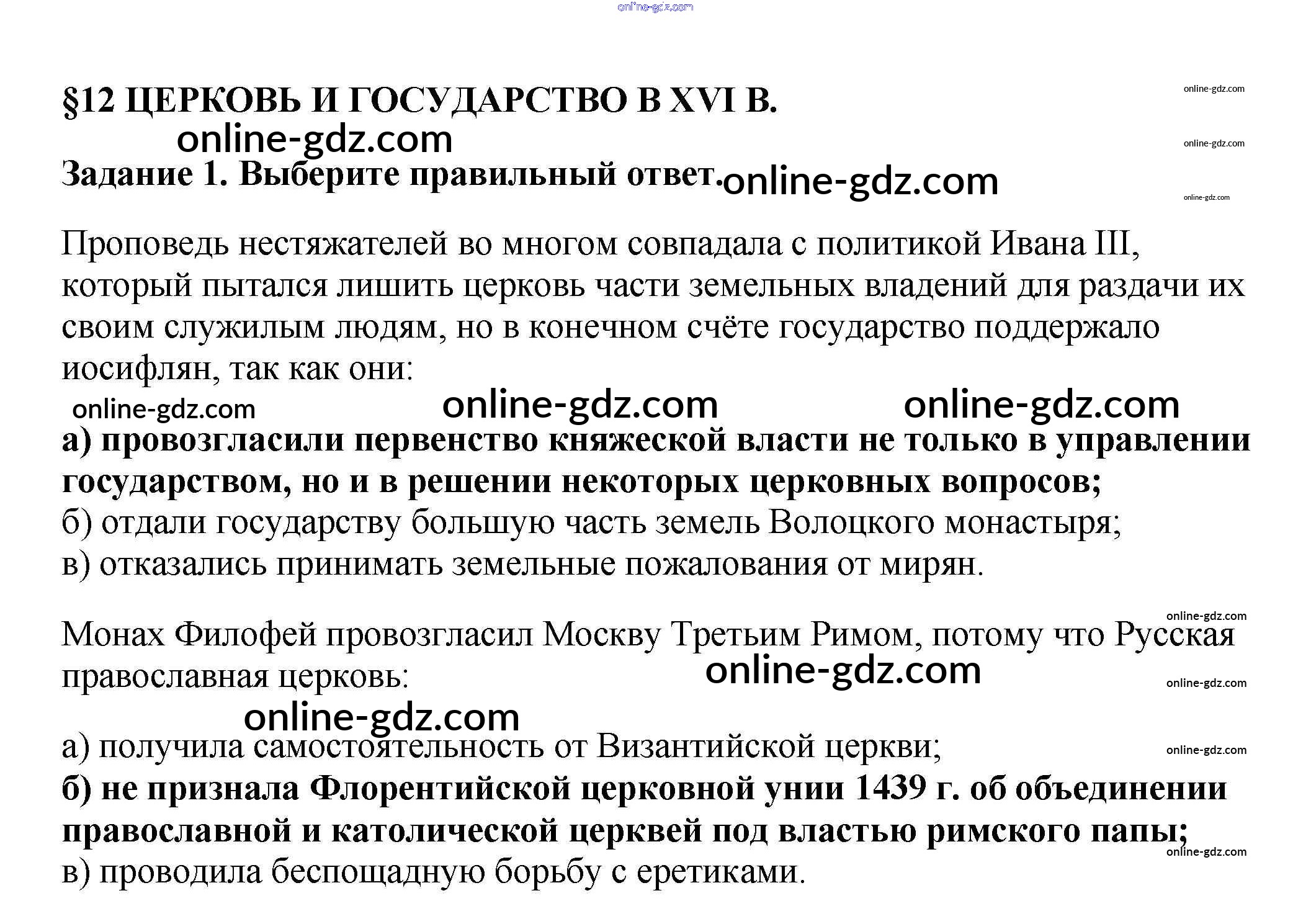Готовые домашние задания по Истории за 7 класс Рабочая тетрадь Данилов, Косулина УМК 2016 - § 12. Церковь и государство в XVI в. 1