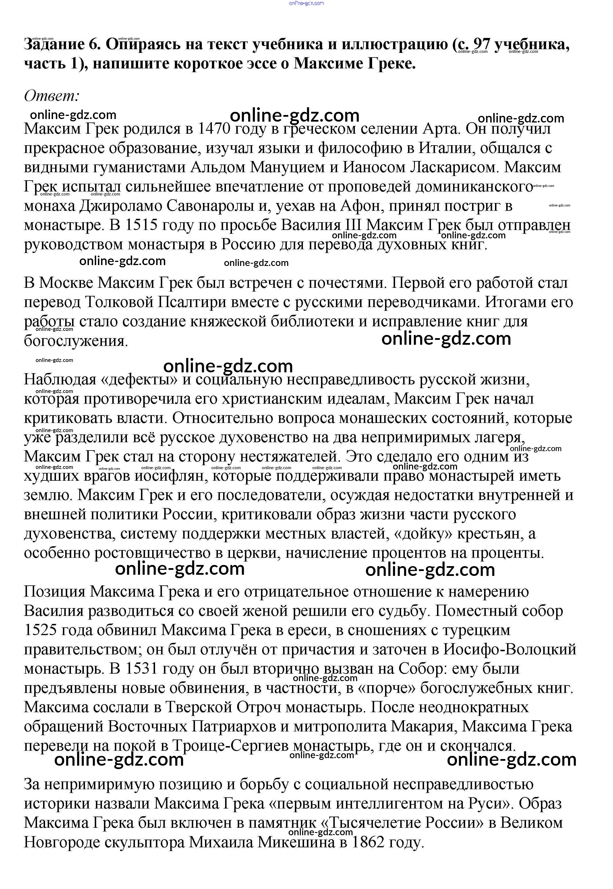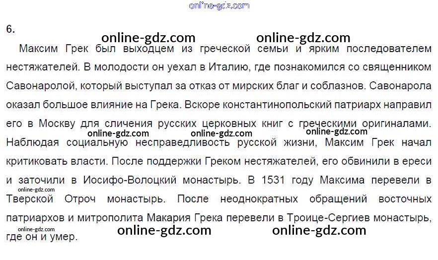 Готовые домашние задания по Истории за 7 класс Рабочая тетрадь Данилов, Косулина УМК 2016 - § 12. Церковь и государство в XVI в. 6
