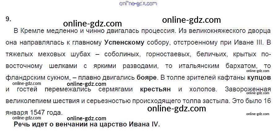 Готовые домашние задания по Истории за 7 класс Рабочая тетрадь Данилов, Косулина УМК 2016 - Культура и повседневная жизнь народов России в XVI в. 9