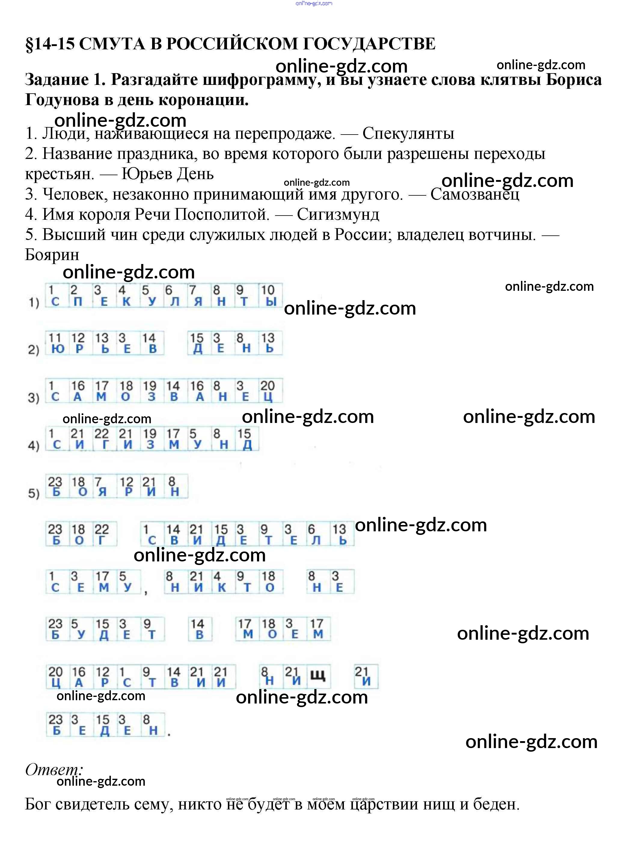 Готовые домашние задания по Истории за 7 класс Рабочая тетрадь Данилов, Косулина УМК 2016 - § 14—15. Смута в российском государстве 1