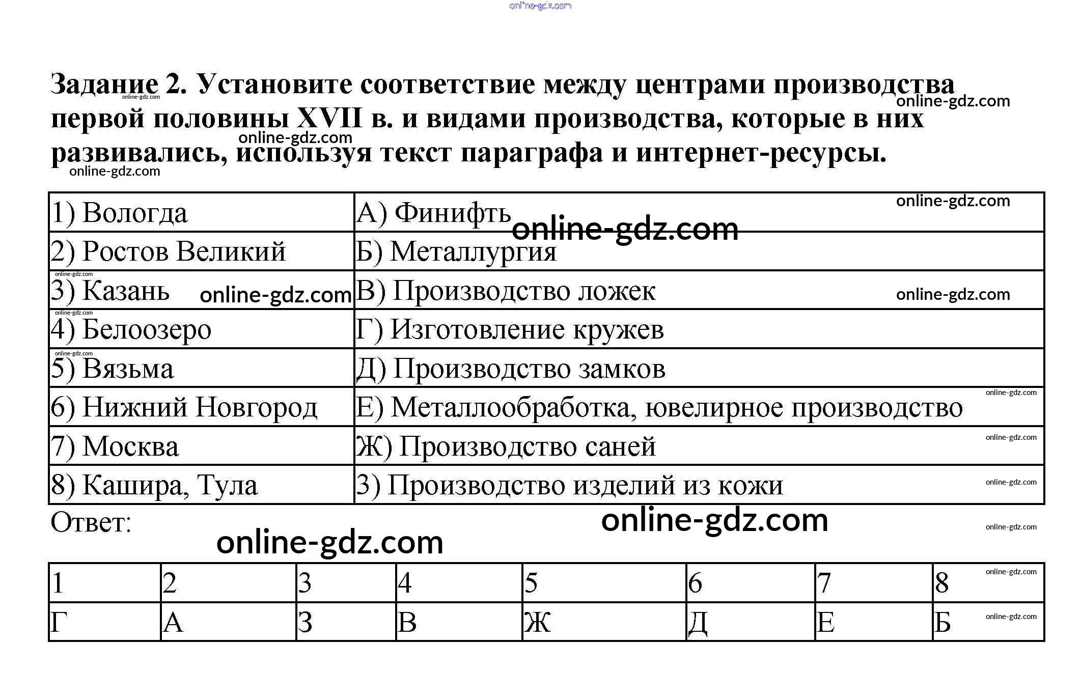 Готовые домашние задания по Истории за 7 класс Рабочая тетрадь Данилов, Косулина УМК 2016 - § 17. Экономическое развитие России в XVII в. 2