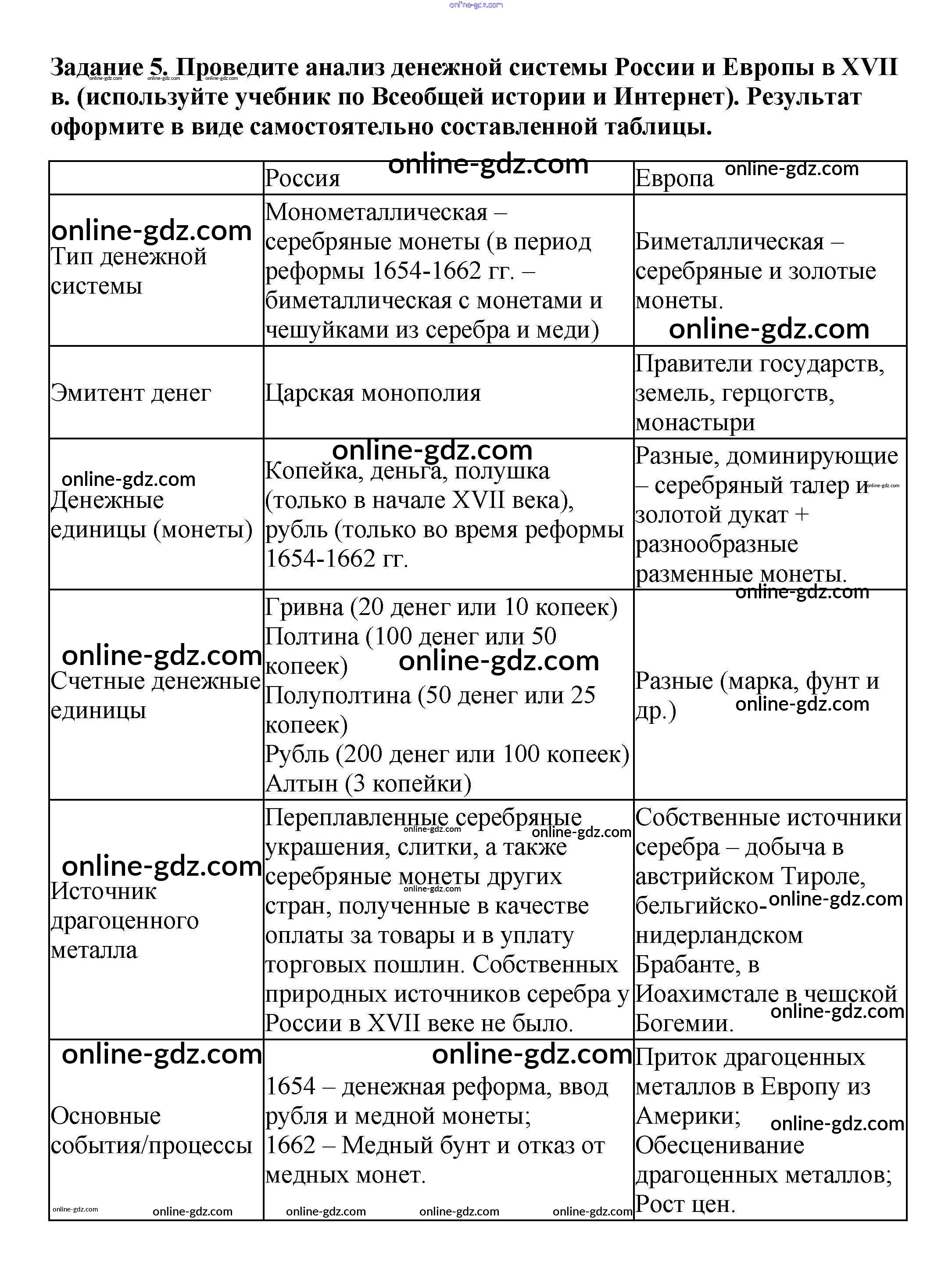 Готовые домашние задания по Истории за 7 класс Рабочая тетрадь Данилов, Косулина УМК 2016 - § 17. Экономическое развитие России в XVII в. 5