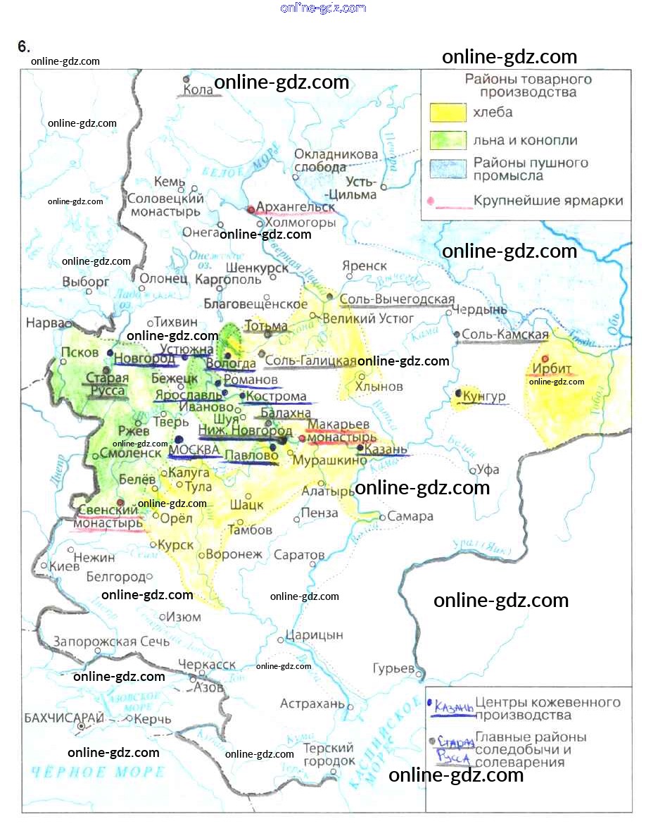 Готовые домашние задания по Истории за 7 класс Рабочая тетрадь Данилов, Косулина УМК 2016 - § 17. Экономическое развитие России в XVII в. 6