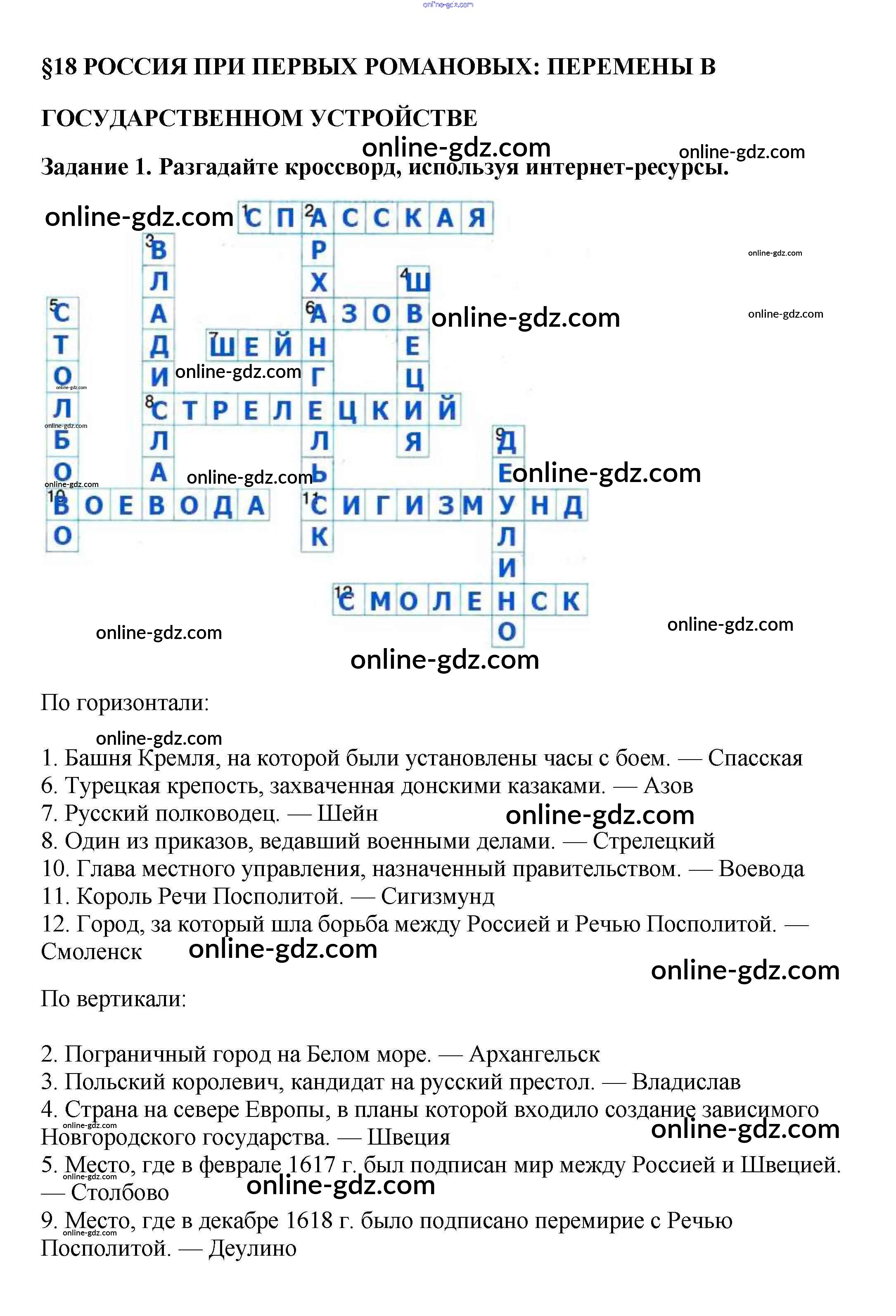 Готовые домашние задания по Истории за 7 класс Рабочая тетрадь Данилов, Косулина УМК 2016 - § 18. Россия при первых Романовых: перемены в государственном устройстве 1