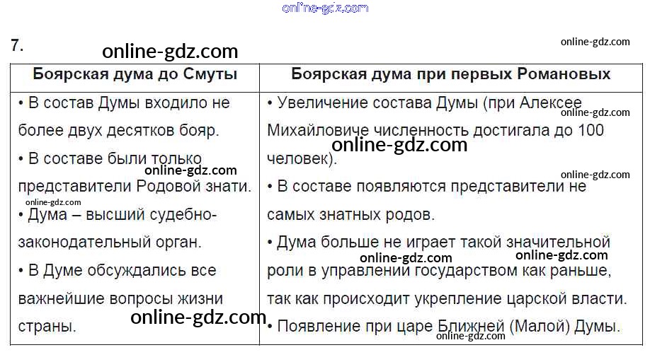 Готовые домашние задания по Истории за 7 класс Рабочая тетрадь Данилов, Косулина УМК 2016 - § 18. Россия при первых Романовых: перемены в государственном устройстве 7