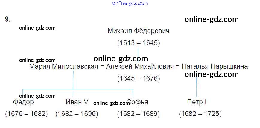 Готовые домашние задания по Истории за 7 класс Рабочая тетрадь Данилов, Косулина УМК 2016 - § 18. Россия при первых Романовых: перемены в государственном устройстве 9