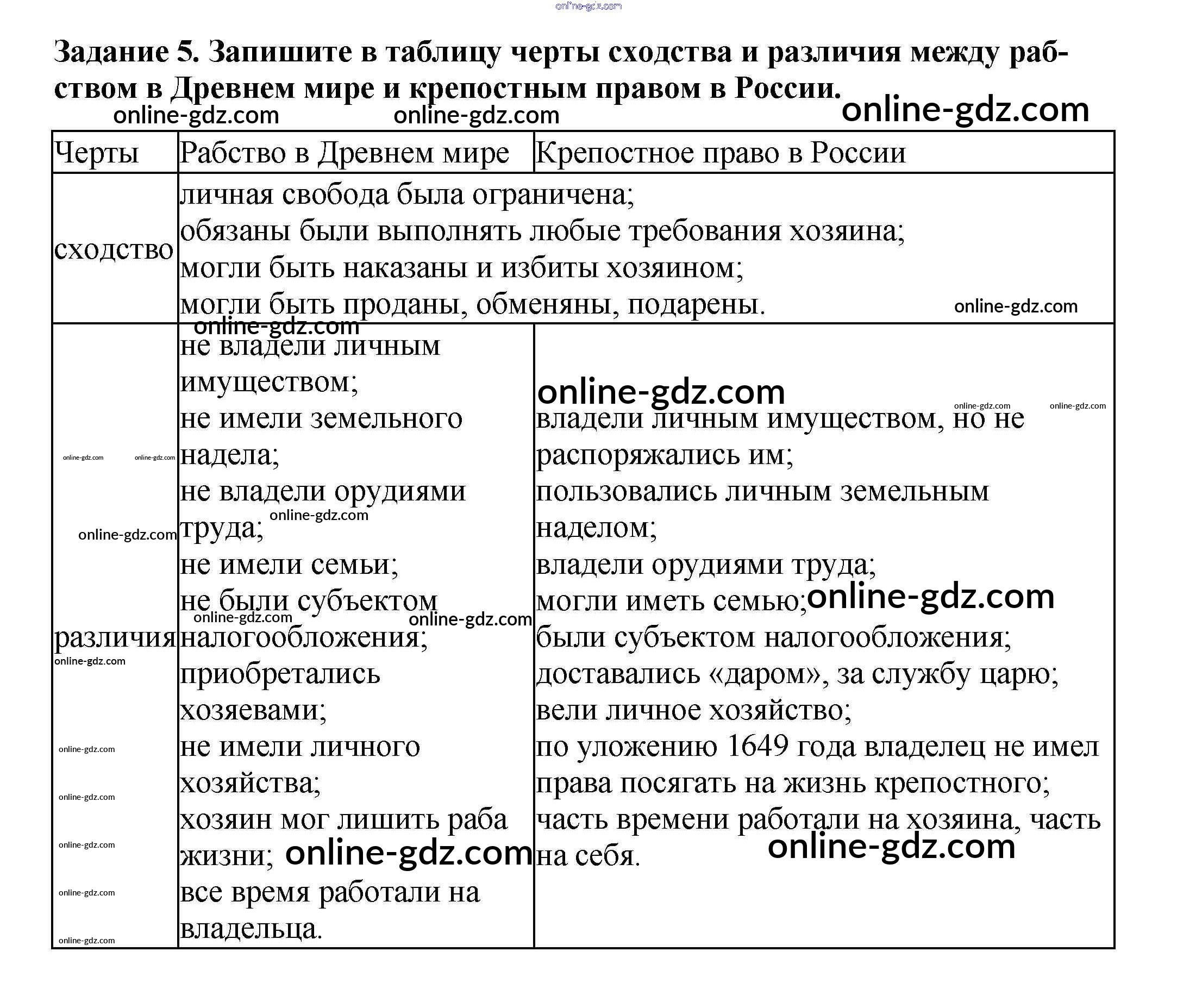 Готовые домашние задания по Истории за 7 класс Рабочая тетрадь Данилов, Косулина УМК 2016 - § 19. Изменения в социальной структуре российского общества 5