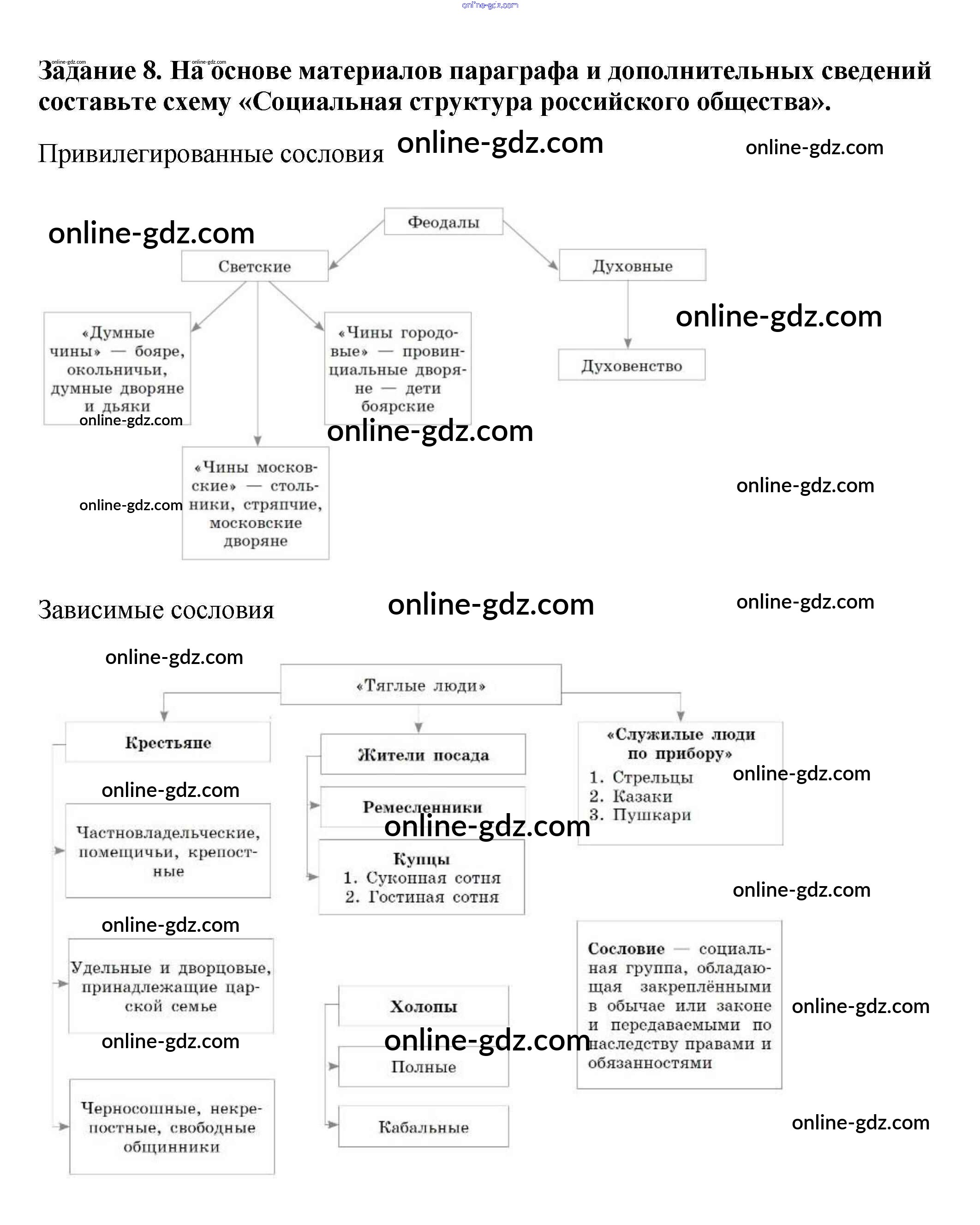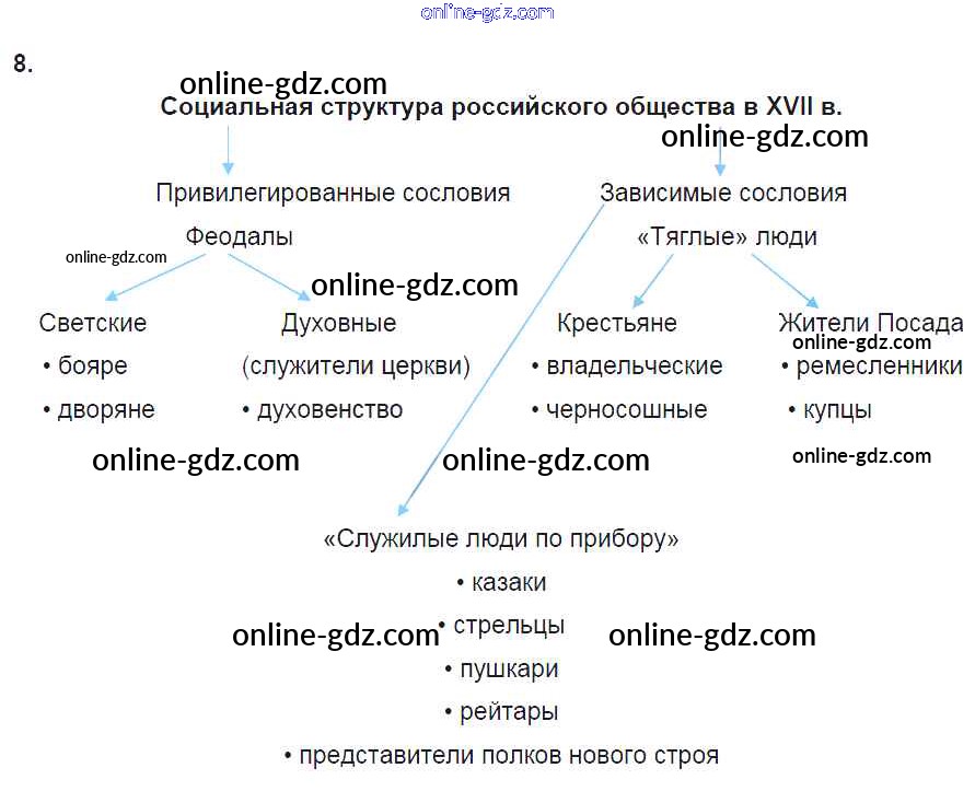 Готовые домашние задания по Истории за 7 класс Рабочая тетрадь Данилов, Косулина УМК 2016 - § 19. Изменения в социальной структуре российского общества 8