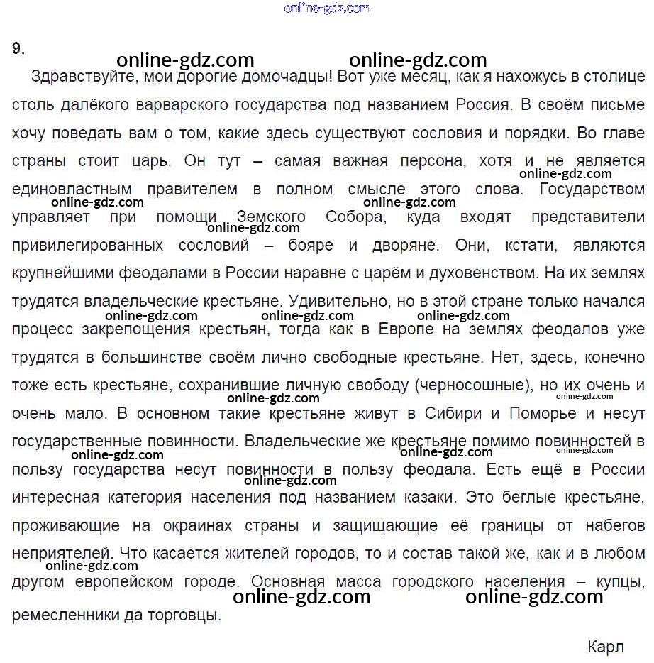 Готовые домашние задания по Истории за 7 класс Рабочая тетрадь Данилов, Косулина УМК 2016 - § 19. Изменения в социальной структуре российского общества 9