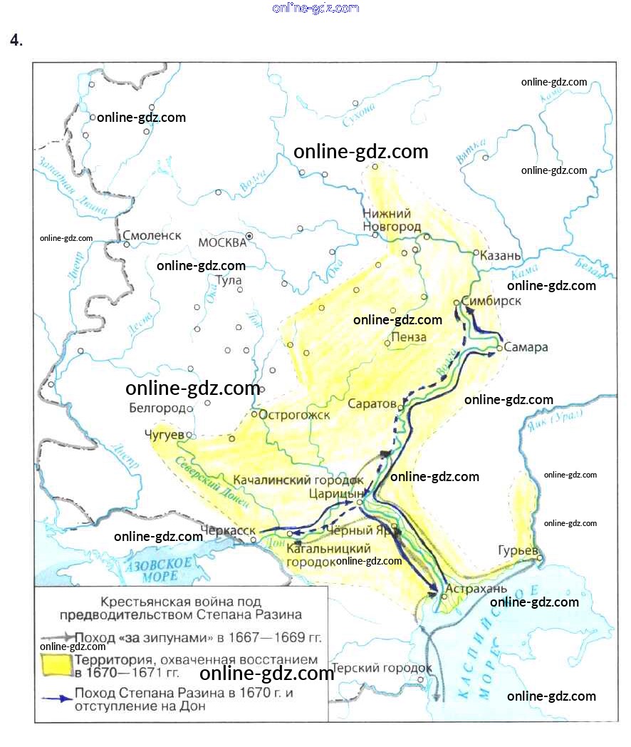 Готовые домашние задания по Истории за 7 класс Рабочая тетрадь Данилов, Косулина УМК 2016 - § 20. Народные движения в XVII в. 4