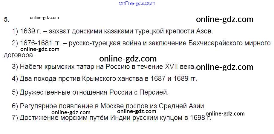 Готовые домашние задания по Истории за 7 класс Рабочая тетрадь Данилов, Косулина УМК 2016 - § 21—22. Россия в системе международных отношений 5