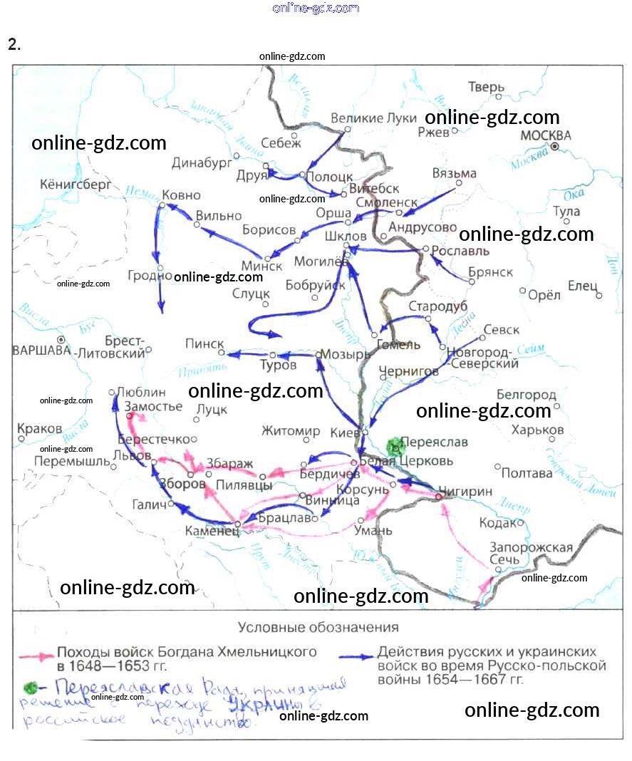 Готовые домашние задания по Истории за 7 класс Рабочая тетрадь Данилов, Косулина УМК 2016 - § 23. «Под рукой российского государства»: Вхождение Украины в состав России 2