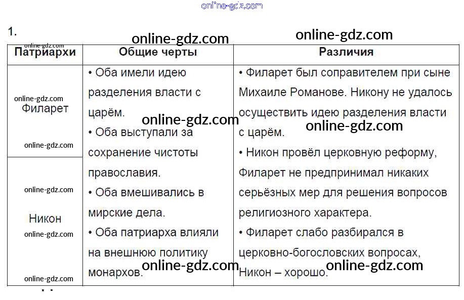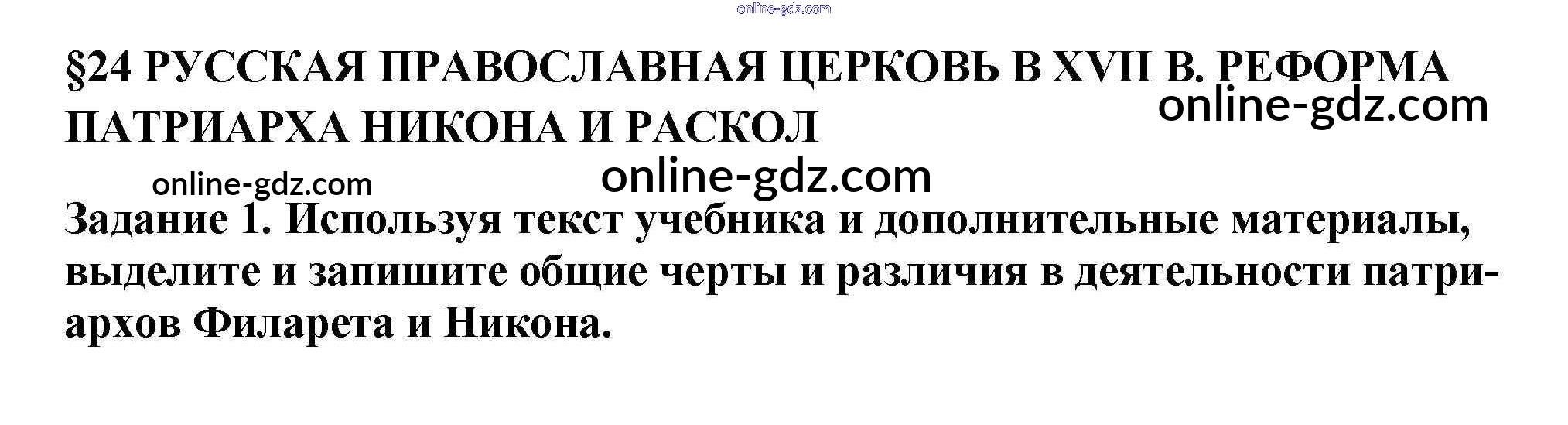 Готовые домашние задания по Истории за 7 класс Рабочая тетрадь Данилов, Косулина УМК 2016 - § 24. Русская православная церковь в XVII в. Реформа патриарха Никона и раскол 1