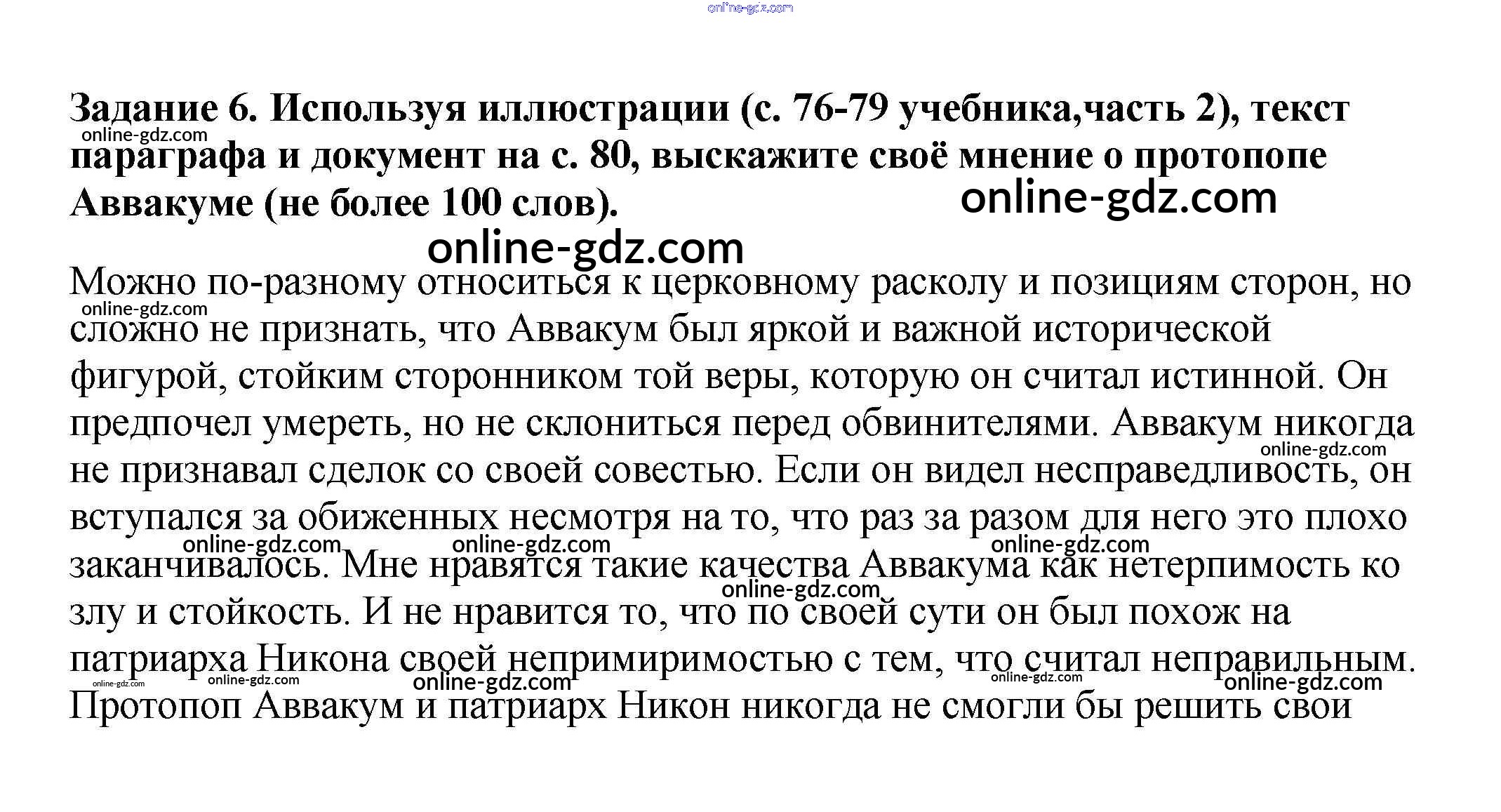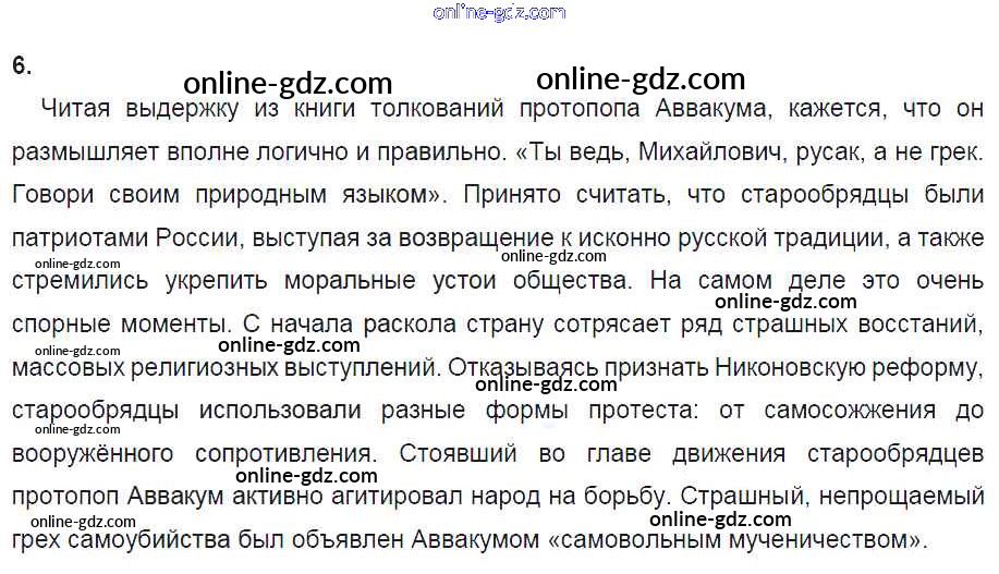 Готовые домашние задания по Истории за 7 класс Рабочая тетрадь Данилов, Косулина УМК 2016 - § 24. Русская православная церковь в XVII в. Реформа патриарха Никона и раскол 6