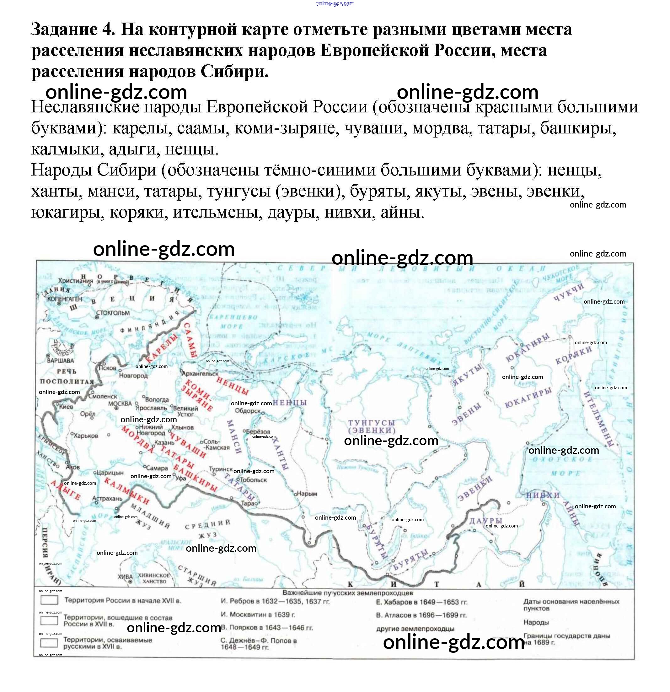 Готовые домашние задания по Истории за 7 класс Рабочая тетрадь Данилов, Косулина УМК 2016 - Народы России в XVII в. 4