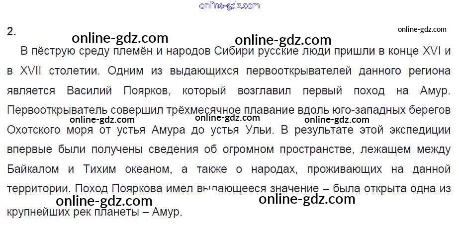 Готовые домашние задания по Истории за 7 класс Рабочая тетрадь Данилов, Косулина УМК 2016 - § 25. Русские путешественники и первопроходцы XVII в. 2