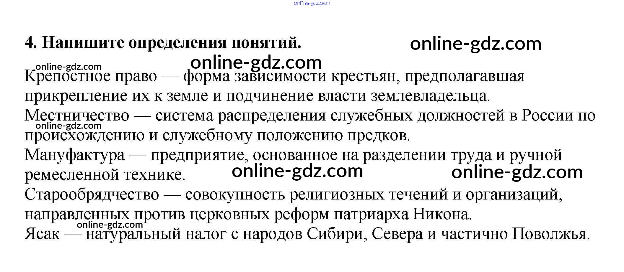 Готовые домашние задания по Истории за 7 класс Рабочая тетрадь Данилов, Косулина УМК  2016 - Задания для самоконтроля  4