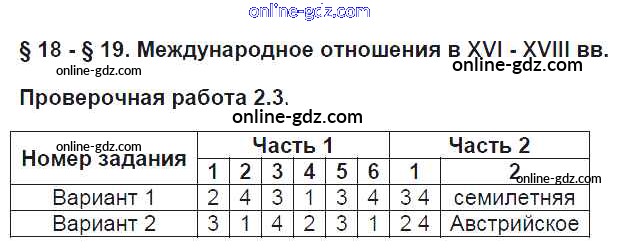Готовые домашние задания по Истории за 7 класс Проверочные и контрольные работы Баранов УМК 2018 - Проверочные работы 2.3