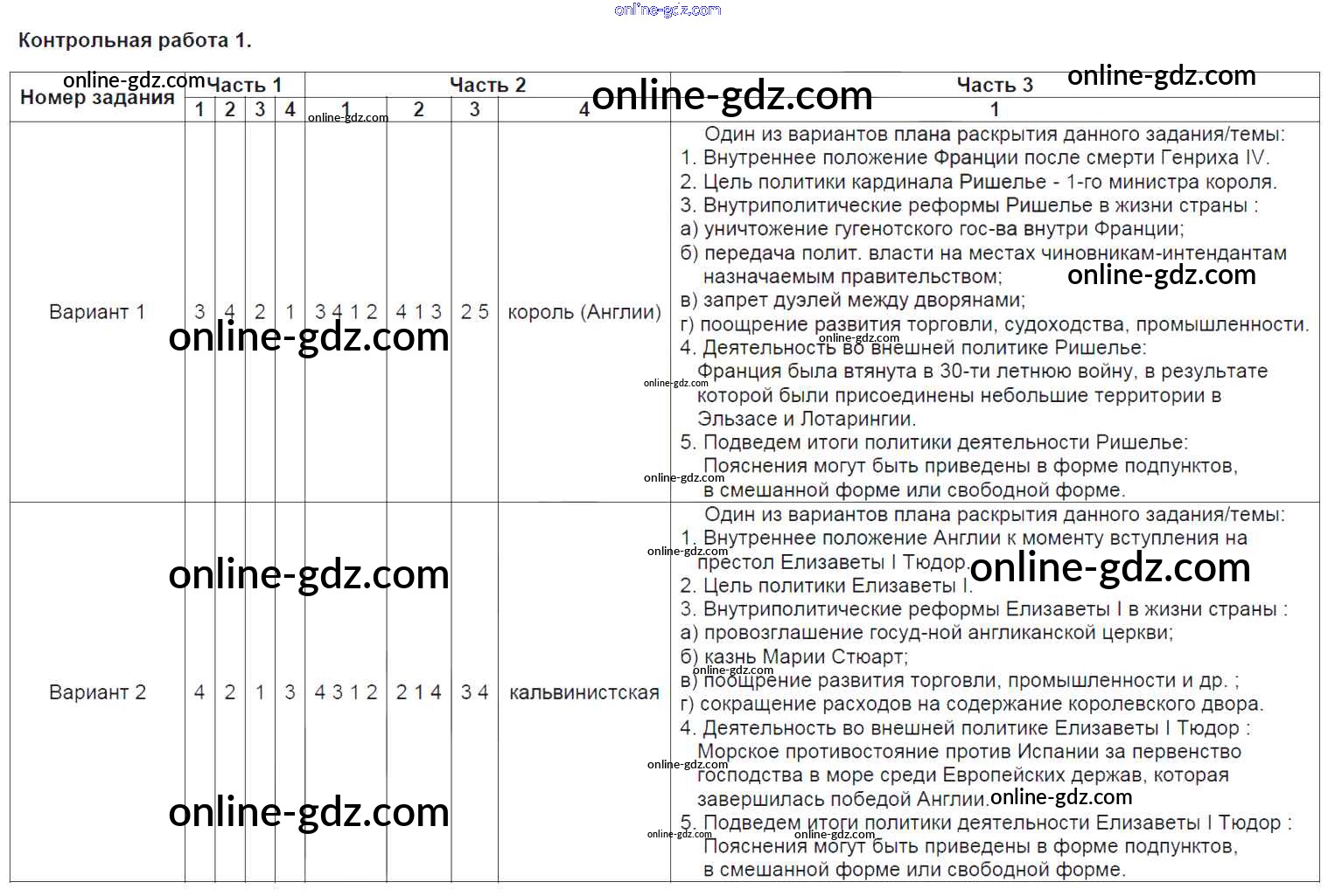 Готовые домашние задания по Истории за 7 класс Проверочные и контрольные работы Баранов УМК 2018 - Контрольные работы 1