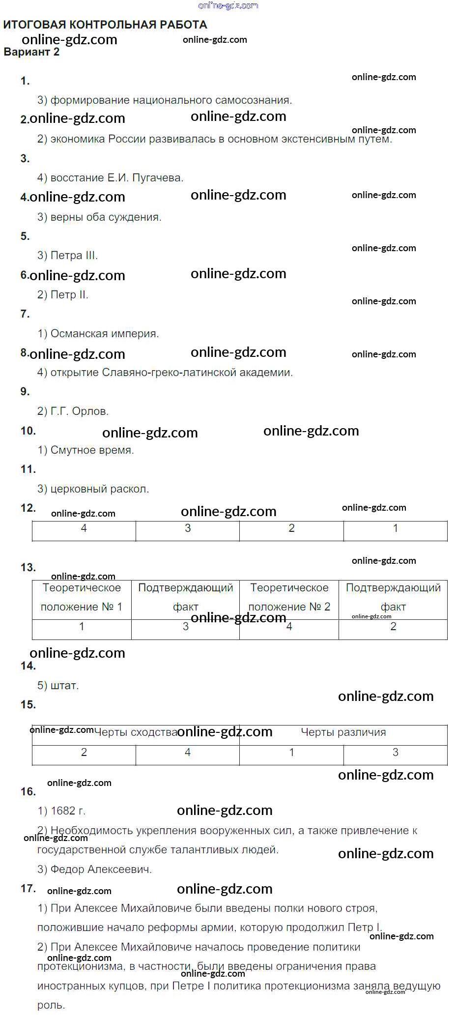 Готовые домашние задания по Истории за 7 класс Рабочая тетрадь Акиньшина, Артасов 2013 - Итоговая контрольная работа Вариант 2
