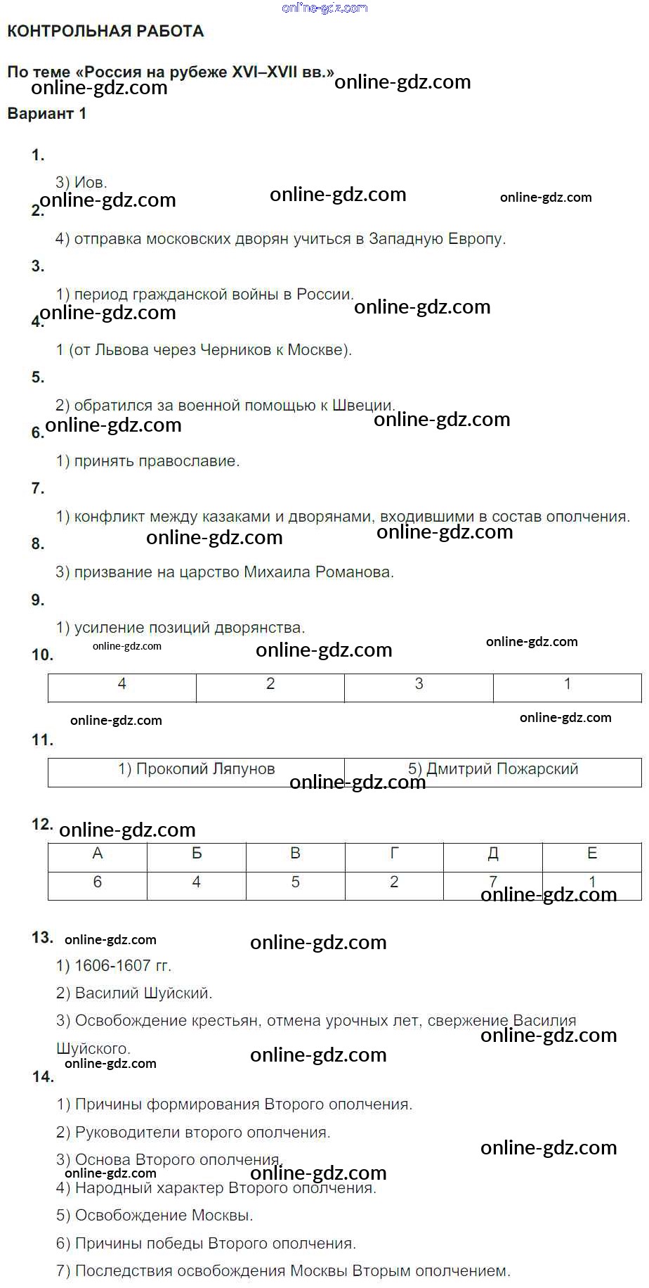 Готовые домашние задания по Истории за 7 класс Рабочая тетрадь Акиньшина, Артасов 2013 - КР. Россия на рубеже XVI-XVII вв Вариант 1