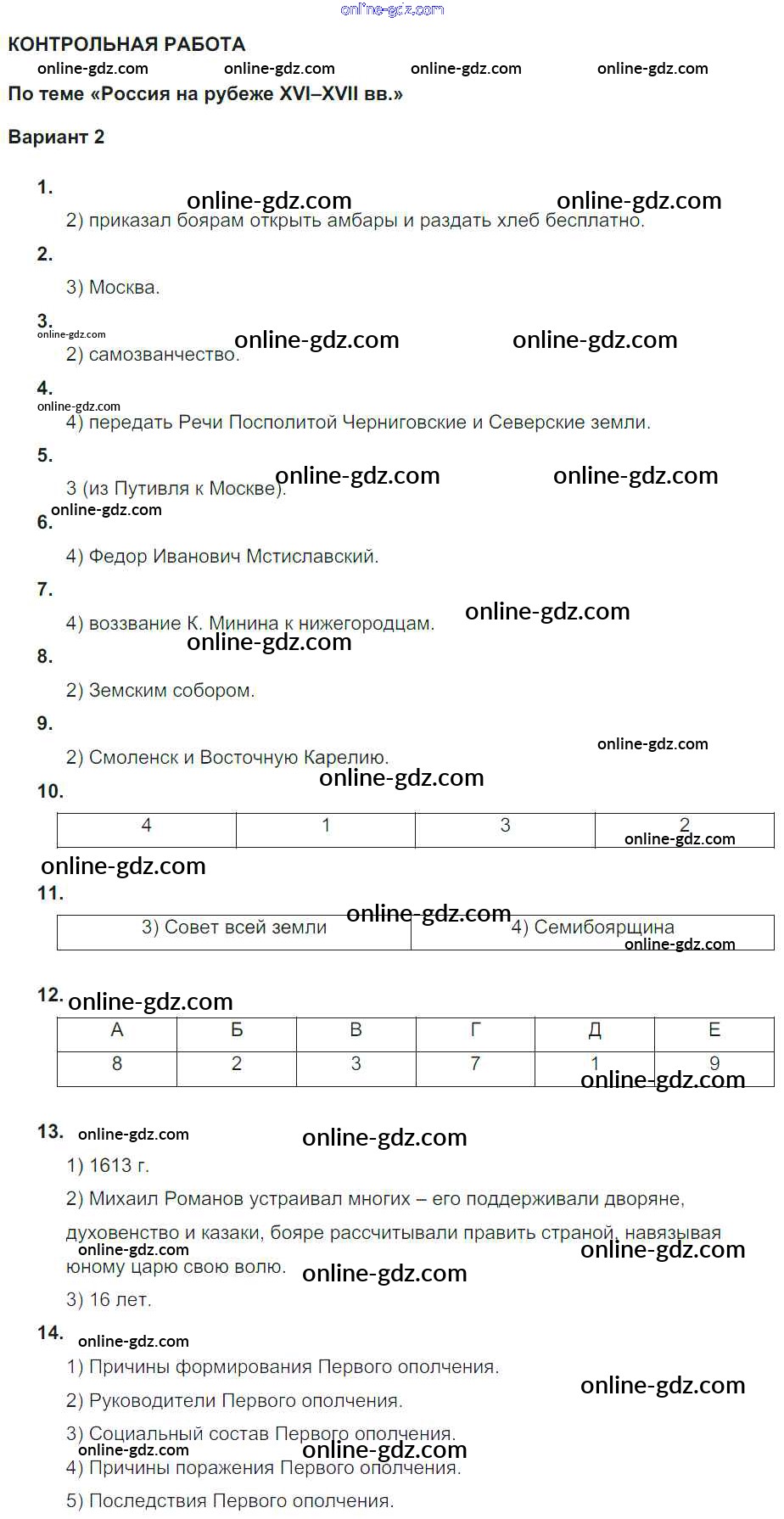 Готовые домашние задания по Истории за 7 класс Рабочая тетрадь Акиньшина, Артасов 2013 - КР. Россия на рубеже XVI-XVII вв Вариант 2