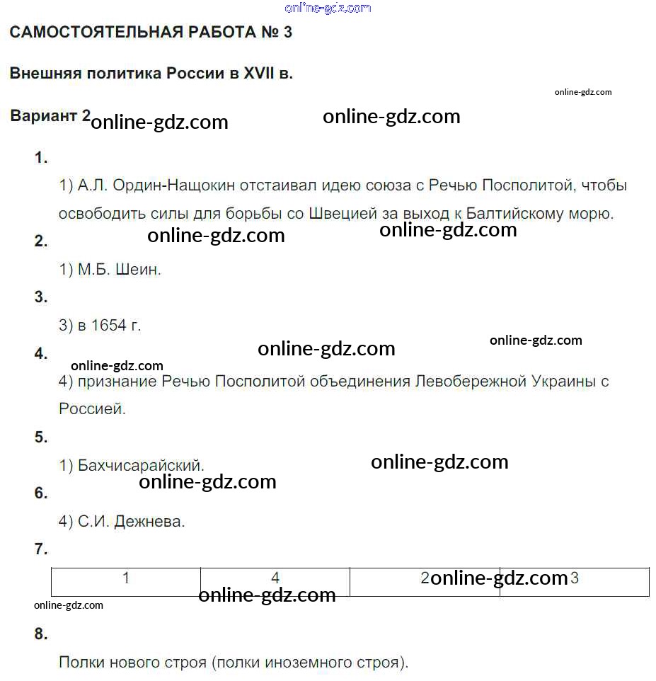 Готовые домашние задания по Истории за 7 класс Рабочая тетрадь Акиньшина, Артасов 2013 - СР-3. Внешняя политика России в XVII веке Россия в XVII веке Вариант 2