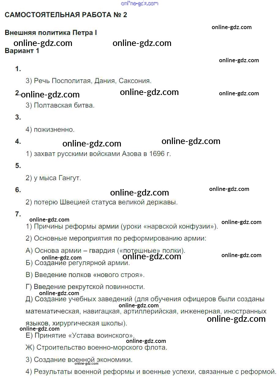 Готовые домашние задания по Истории за 7 класс Рабочая тетрадь Акиньшина, Артасов 2013 - СР-3. Реформы Петра I Россия в первой четверти XVIII века Вариант 1
