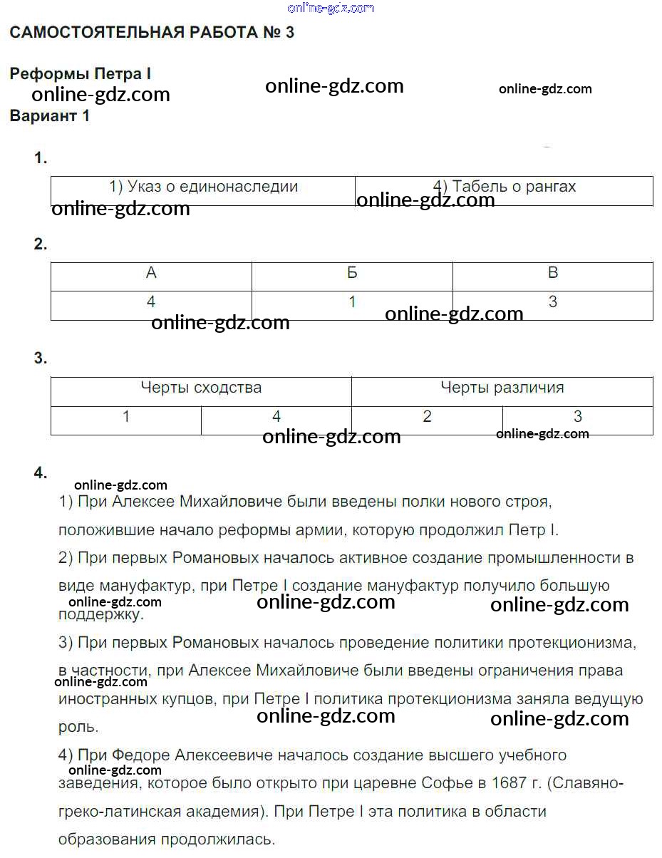 Готовые домашние задания по Истории за 7 класс Рабочая тетрадь Акиньшина, Артасов 2013 - СР-4. Социально-экономическое развитие России в первой четверти XVIII века Россия в первой четверти XVIII века Вариант 1