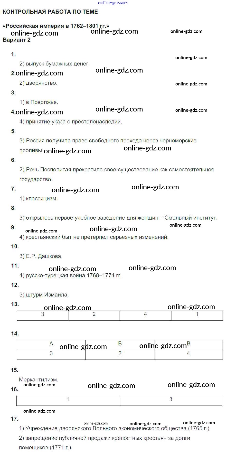 Готовые домашние задания по Истории за 7 класс Рабочая тетрадь Акиньшина, Артасов 2013 - КР. Российская империя в 1762-1801 гг Российская империя в 1762-1801 гг Вариант 2