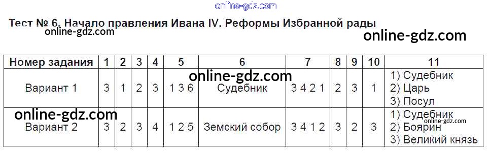 Готовые домашние задания по Истории за 7 класс Тесты Воробьёва УМК 2017 - Часть 1. Тесты 6
