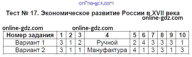 Готовые домашние задания по Истории за 7 класс Тесты Воробьёва УМК 2017 - Часть 2. Тесты 17