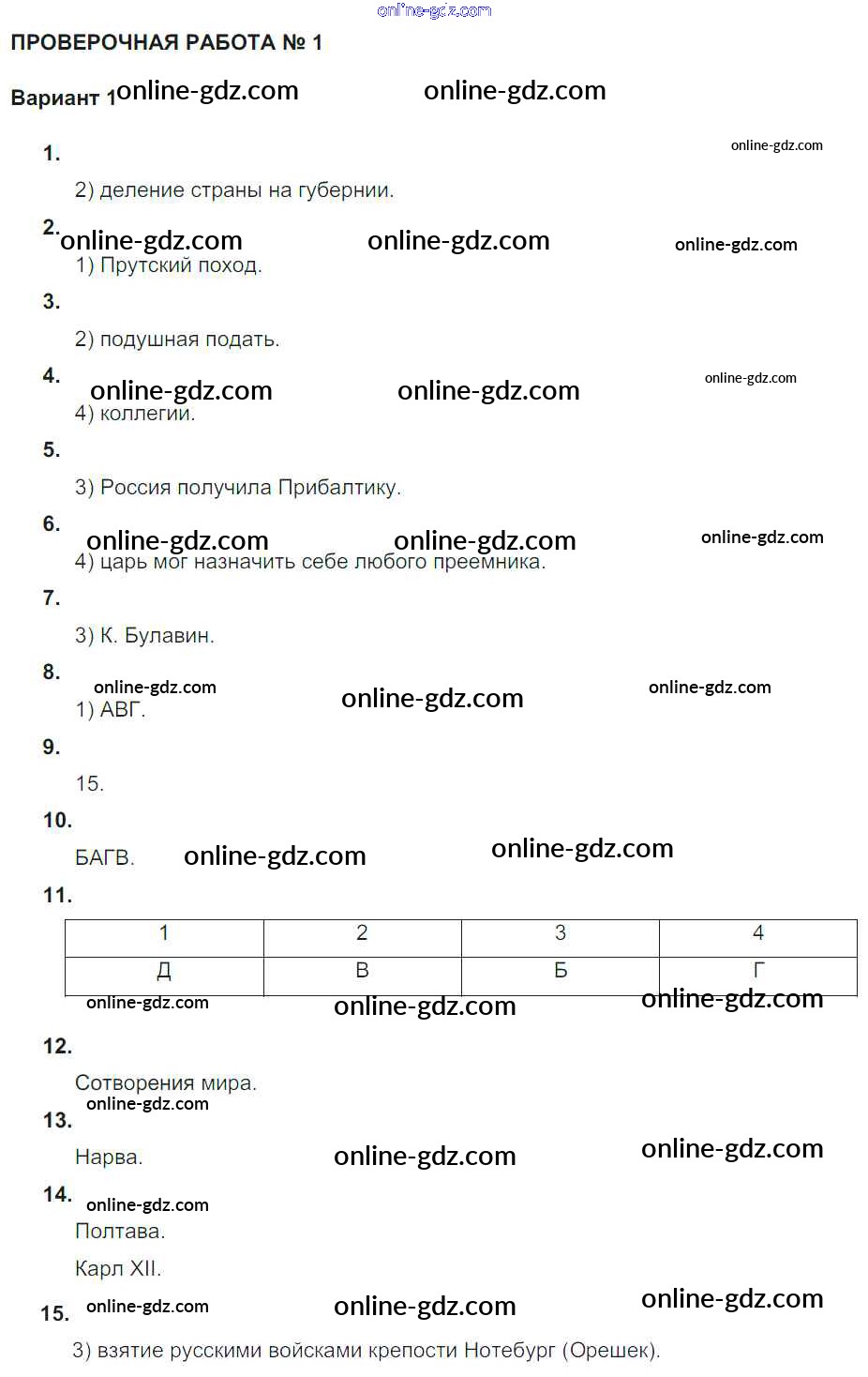 Россия при Петре I / проверочная работа 1 / вариант 1