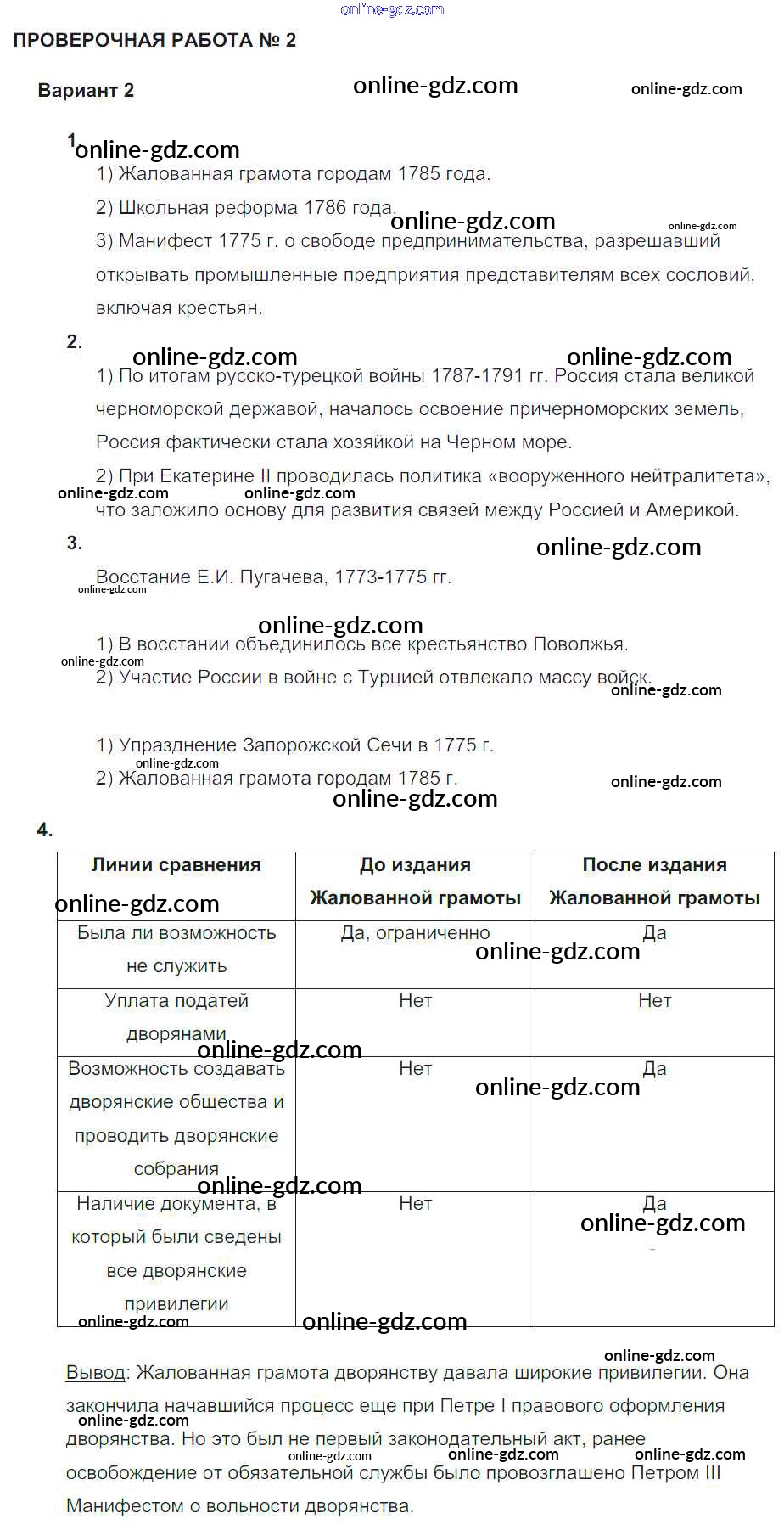 Готовые домашние задания по Истории за 7 класс Тетрадь-экзаменатор Артасов Сферы 2018 - Проверочная работа 2 Россия в 1762-1801 гг. Вариант 2