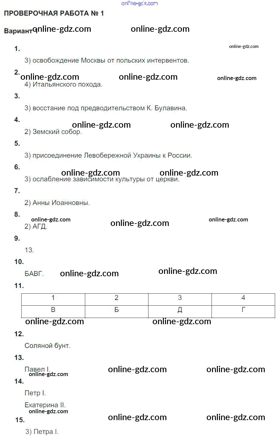 Готовые домашние задания по Истории за 7 класс Тетрадь-экзаменатор Артасов Сферы 2018 - Проверочная работа 1 Итоговые проверочные работы Вариант 1