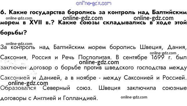 Готовые домашние задания по Истории за 8 класс Учебник Арсентьев, Курукин 2016 - Вопросы и задания §1. Россия и Европа в конце XVII в. 6