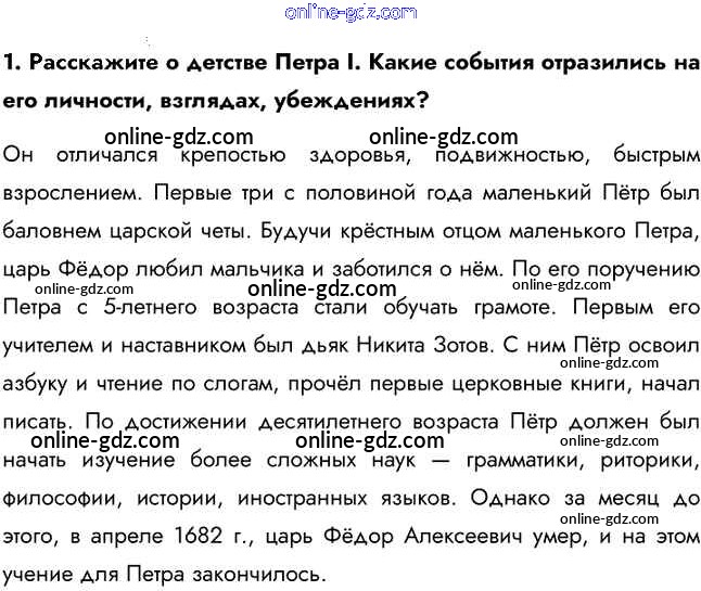 Готовые домашние задания по Истории за 8 класс Учебник Арсентьев, Курукин 2016 - Вопросы и задания §3. Начало правления Петра I 1