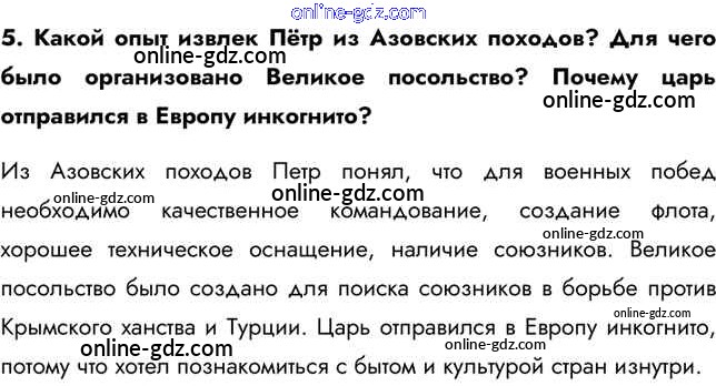 Готовые домашние задания по Истории за 8 класс Учебник Арсентьев, Курукин 2016 - Вопросы и задания §3. Начало правления Петра I 5