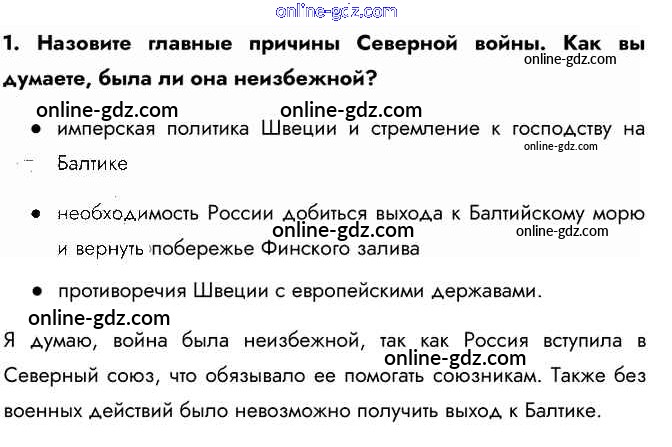 Готовые домашние задания по Истории за 8 класс Учебник Арсентьев, Курукин 2016 - Вопросы и задания §4. Великая Северная война 1700—1721 гг. 1