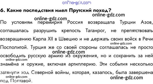 Готовые домашние задания по Истории за 8 класс Учебник Арсентьев, Курукин 2016 - Вопросы и задания §4. Великая Северная война 1700—1721 гг. 6
