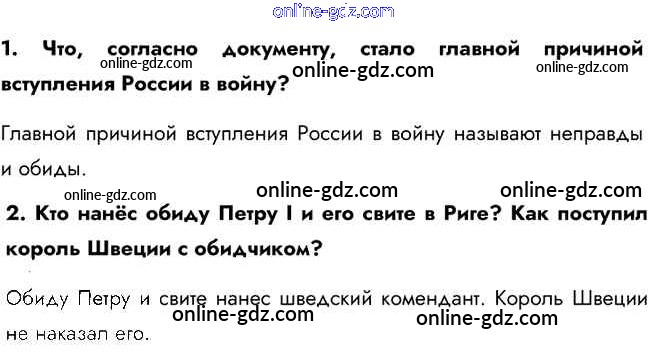 Готовые домашние задания по Истории за 8 класс Учебник Арсентьев, Курукин 2016 - Изучаем документ §4. Великая Северная война 1700—1721 гг. стр.34