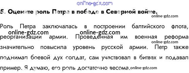 Готовые домашние задания по Истории за 8 класс Учебник Арсентьев, Курукин 2016 - Думаем, сравниваем, размышляем §4. Великая Северная война 1700—1721 гг. 5