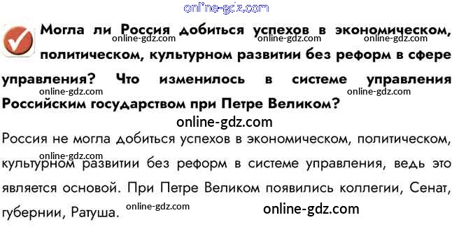 Готовые домашние задания по Истории за 8 класс Учебник Арсентьев, Курукин 2016 - Вопросы в начале параграфа §5. Реформы управления Петра I 1