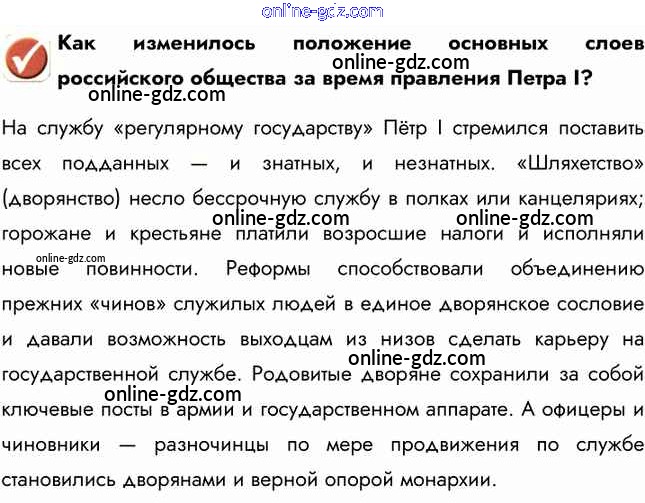 Готовые домашние задания по Истории за 8 класс Учебник Арсентьев, Курукин 2016 - Вопросы в начале параграфа §7. Российское общество в Петровскую эпоху 1